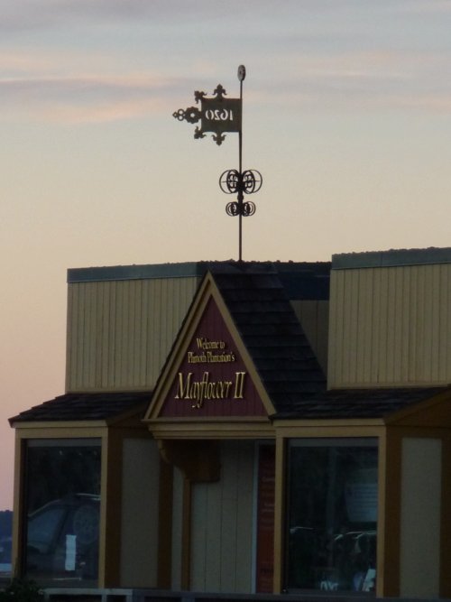 | The visitor center just to the left of the Mayflower II is where this weather vane is located. |